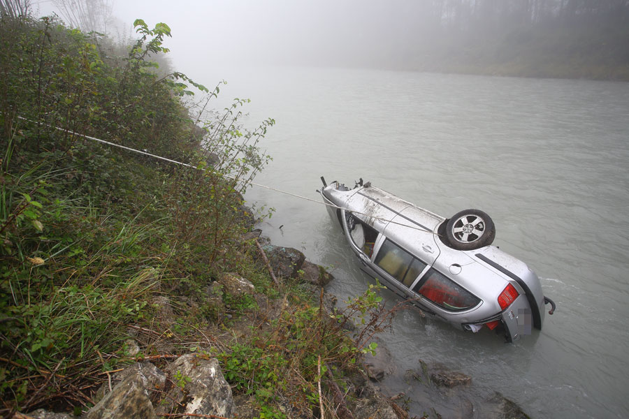 Unfall auf A14 zwischen Schlins und Nenzing: Pkw in Ill gestürzt