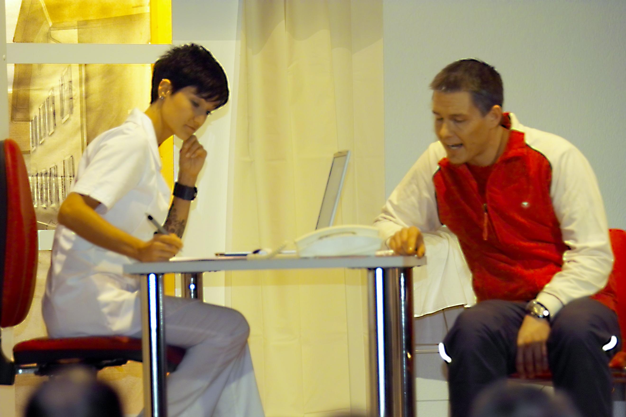 .... wenn das nur gut geht: Petra Illmer mit "Patient" Martin Hartmann.