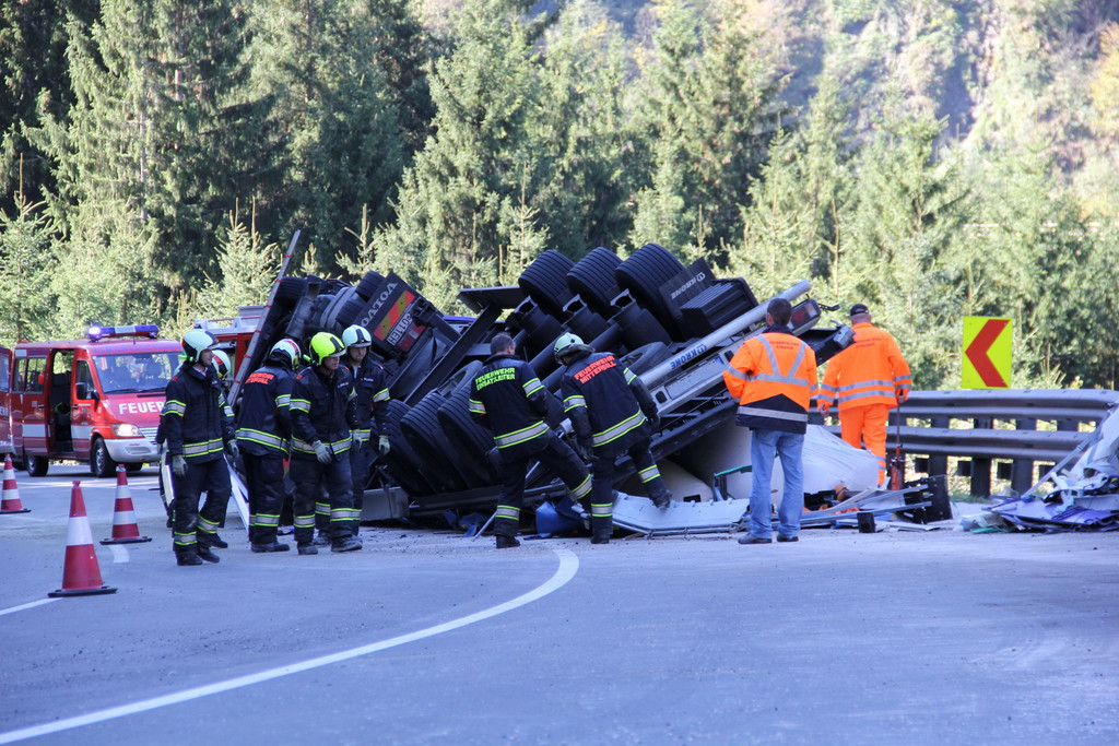 Sattelschlepper kippt in Mittersill um