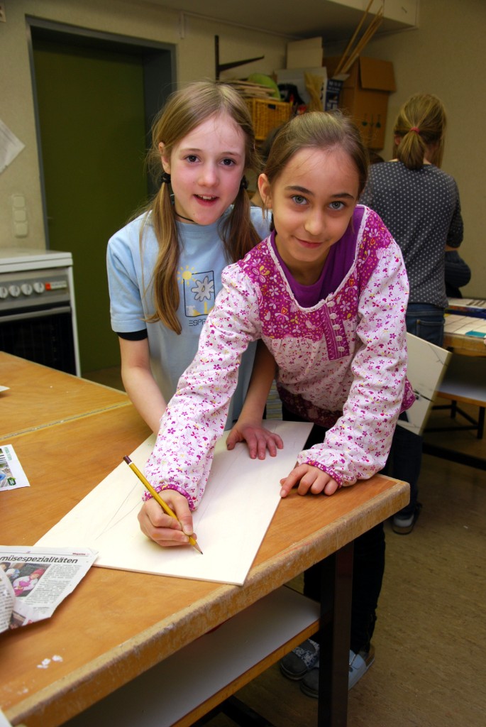 Anna und Amra stellen fleißig Requisiten her.