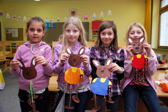 Berna, Katharina, Sophia und Laura haben ihre Osterhasen schon fertig.