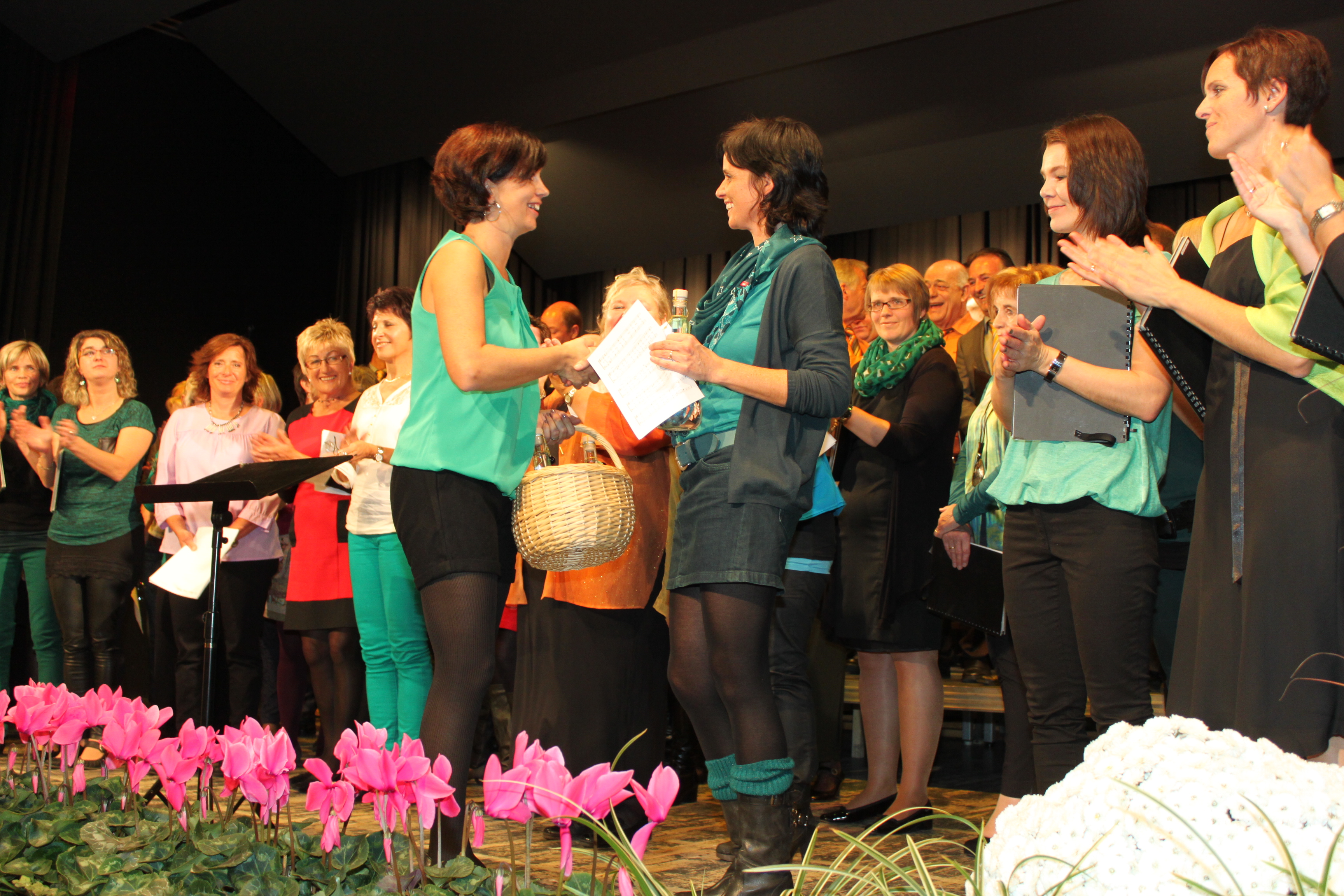 Obfrau Annette Ender bedankt sich im Namen des Kirchenchor Fraxern bei den Chören mit einem Kriasiwasser