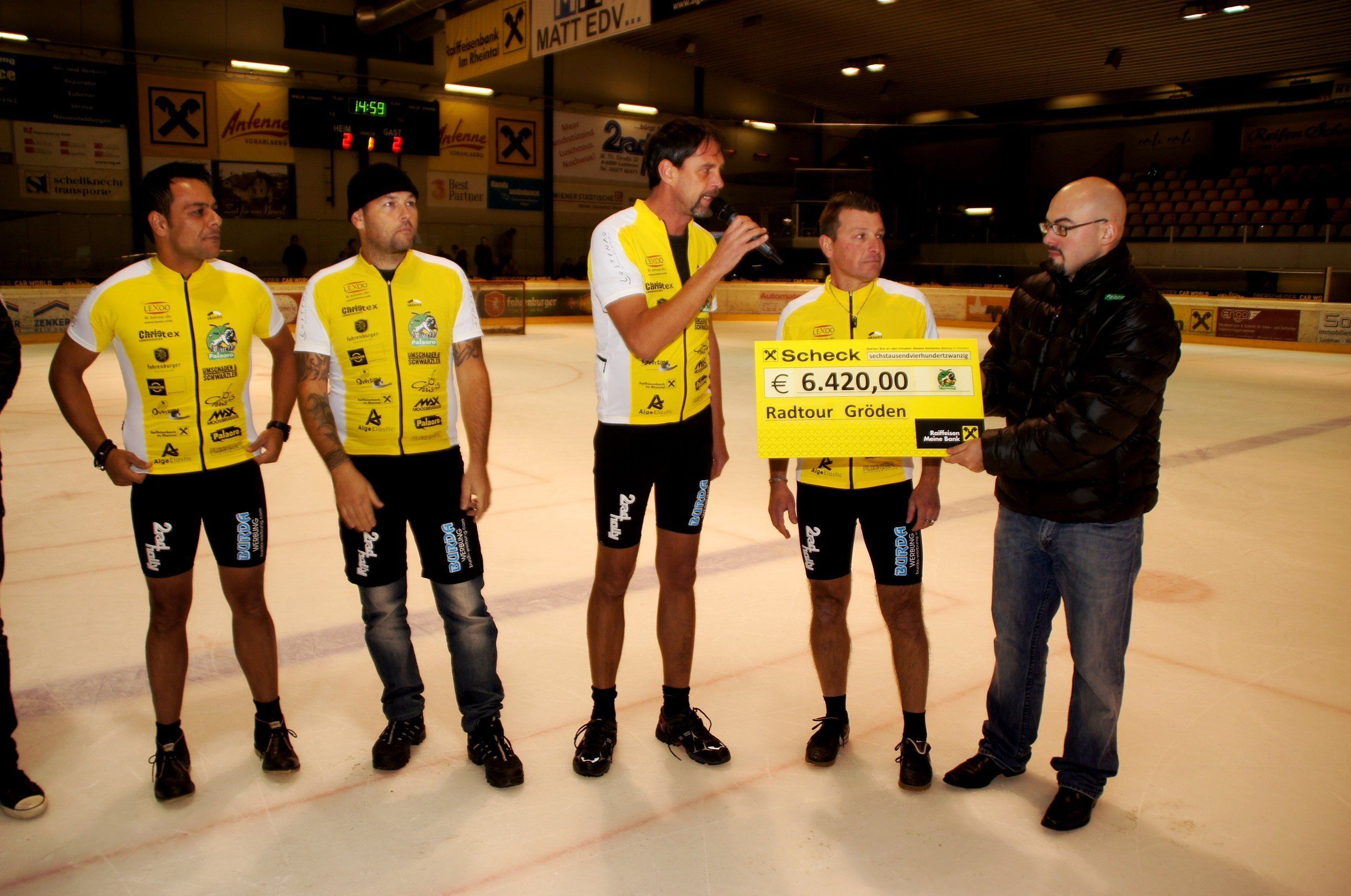 Scheckübergabe beim Eishockeymatch