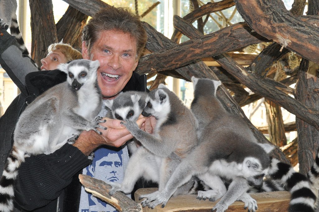 David Hasselhoff besuchte Kattas im Tiergarten Schönbrunn