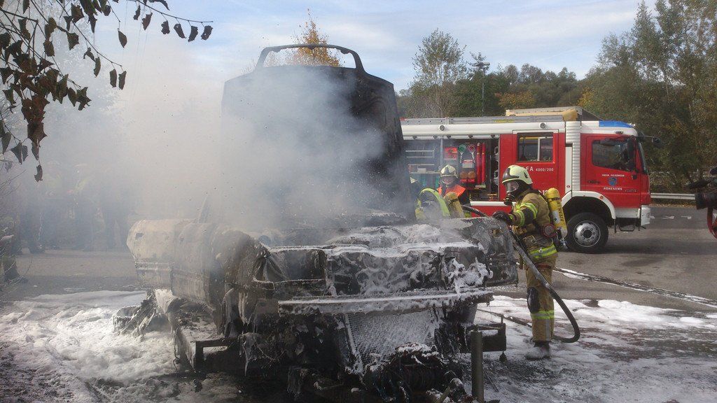 A14 bei Hohenems: Auto auf Raststätte in Vollbrand