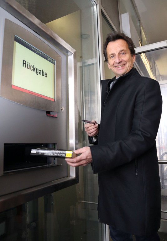 Wiener Büchereien: Der neue Medien-Rückgabe-Automat am Urban-Loritz-Platz