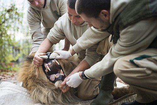 Löwe unter Narkose