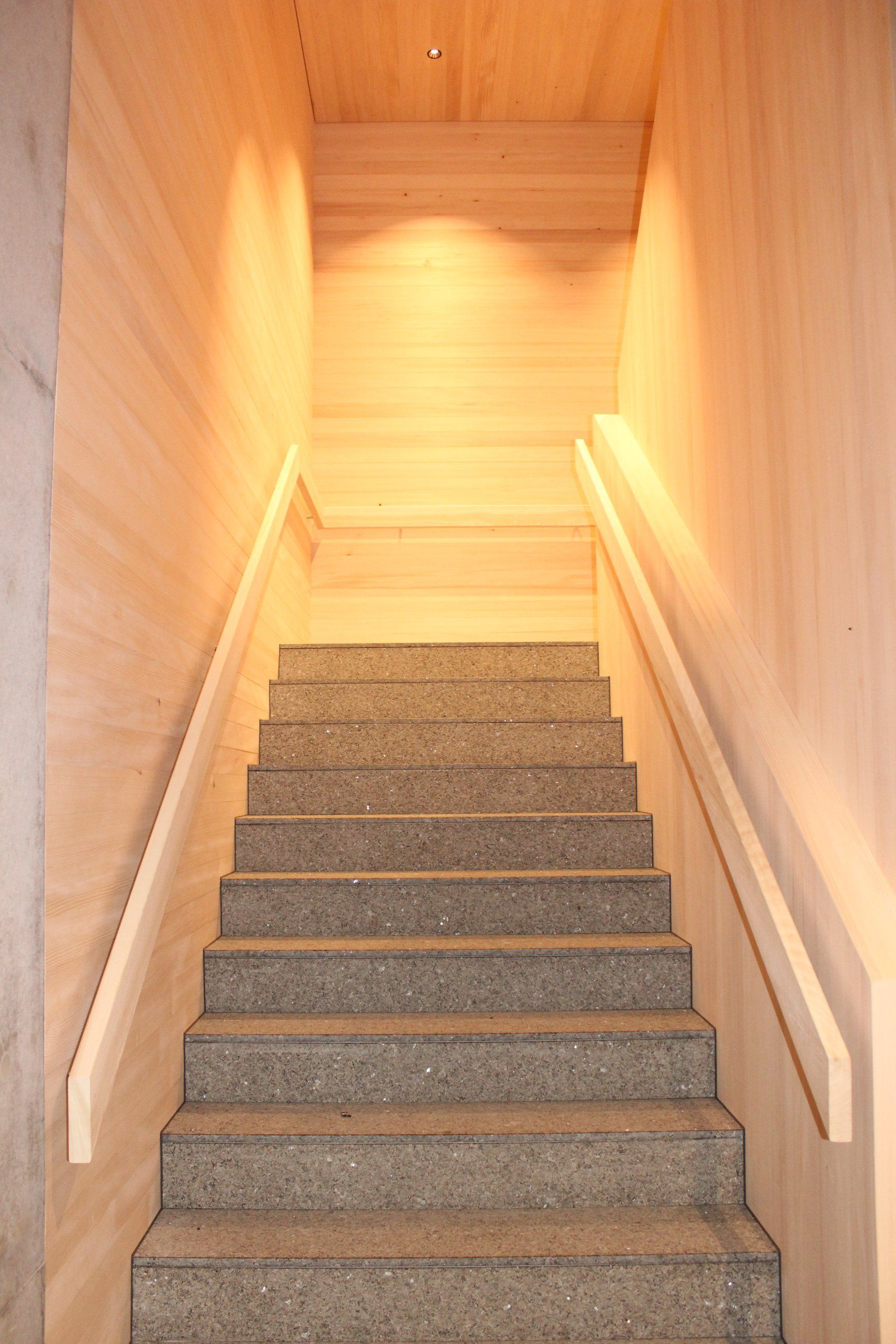Helles Holz dominiert im ganzen Haus, hier bei einer Stiege.