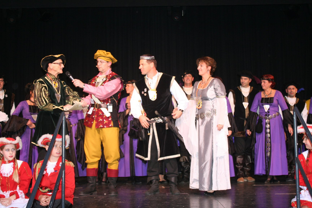 Zeremonienmeister Werner Ritschel und Christian Fetz mit dem alten Prinzenpaar