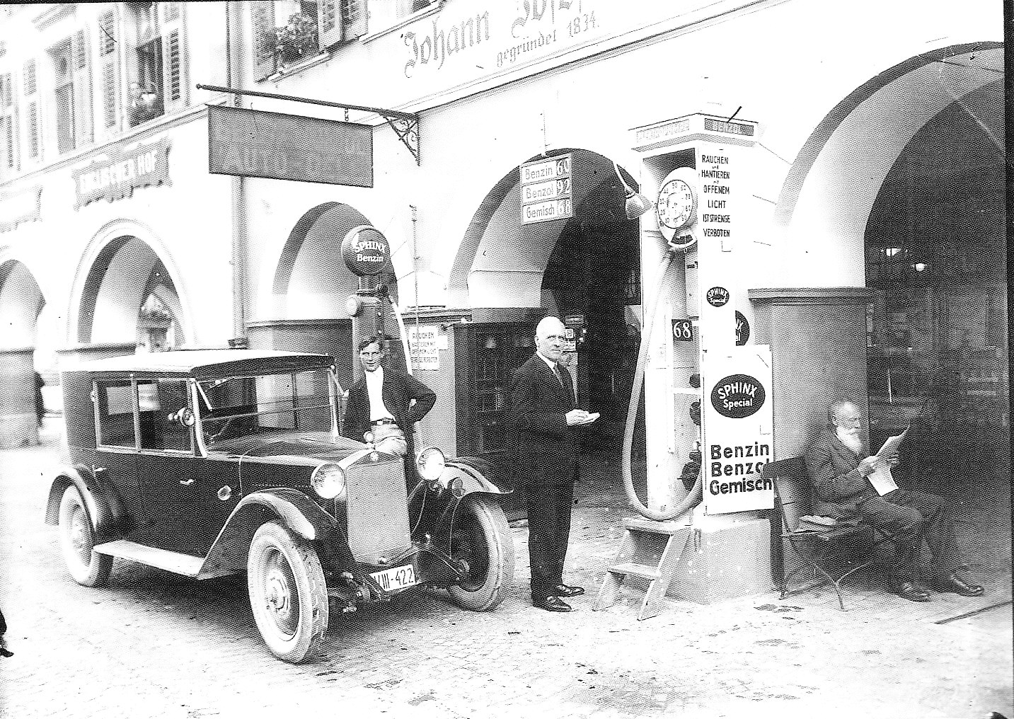 Das Gohmhaus mit Tankstelle nach dem 2. Weltkrieg