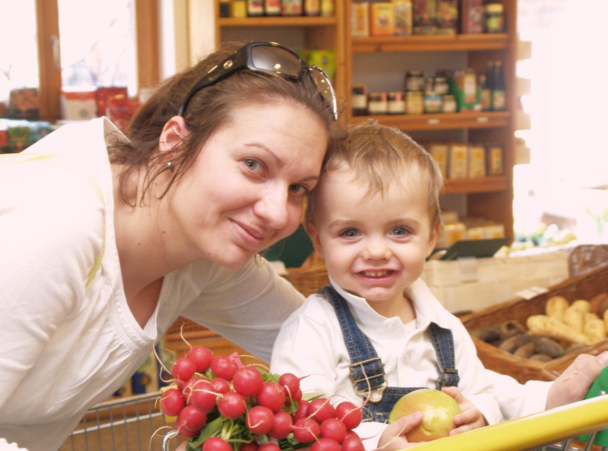 Lucie kommt jede Woche mit Mark zum Einkaufen.