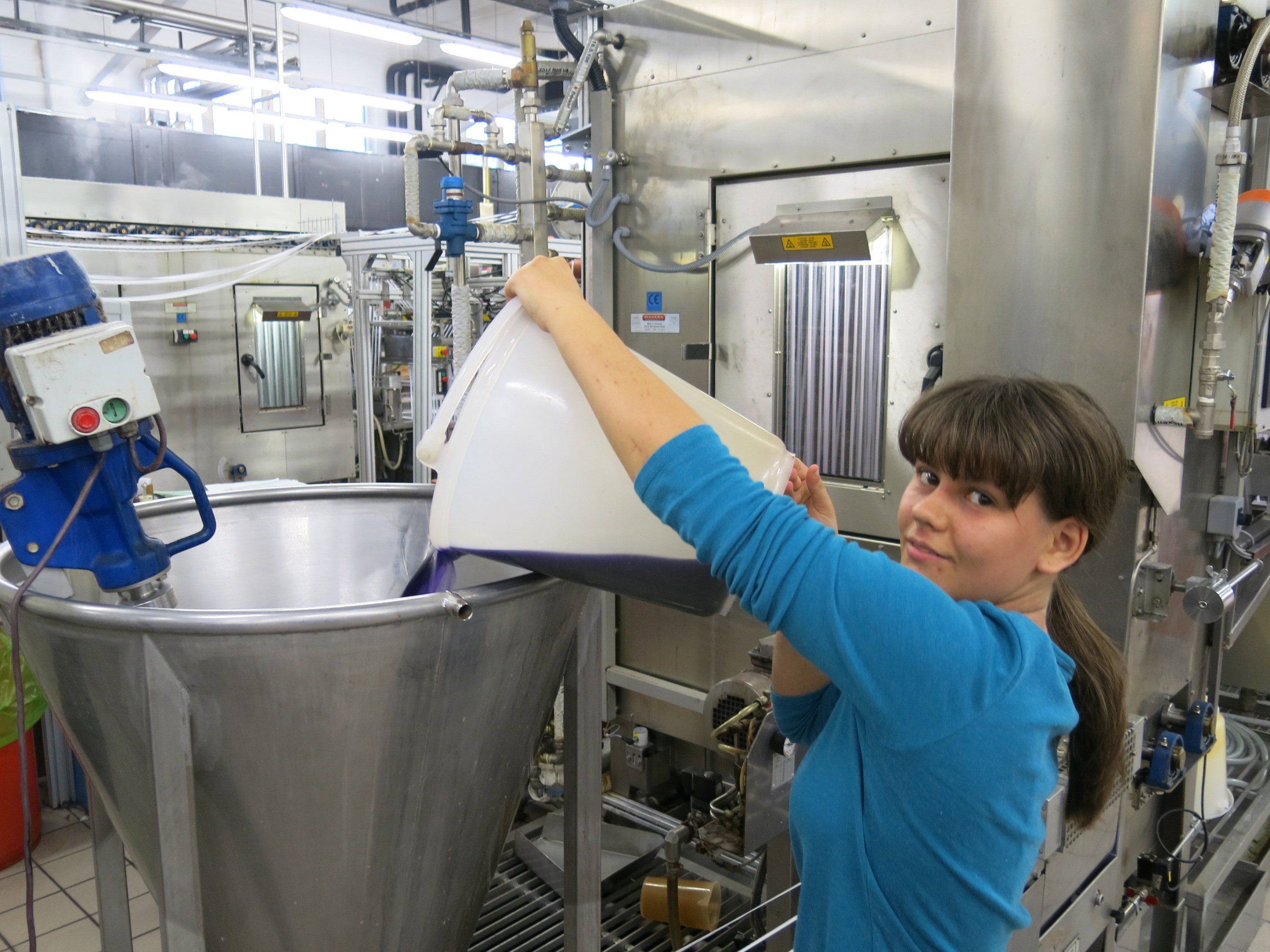 Der Überlauf vomFarbstoffgemisch wird in den Ansatzbehälter zurückgeschüttet