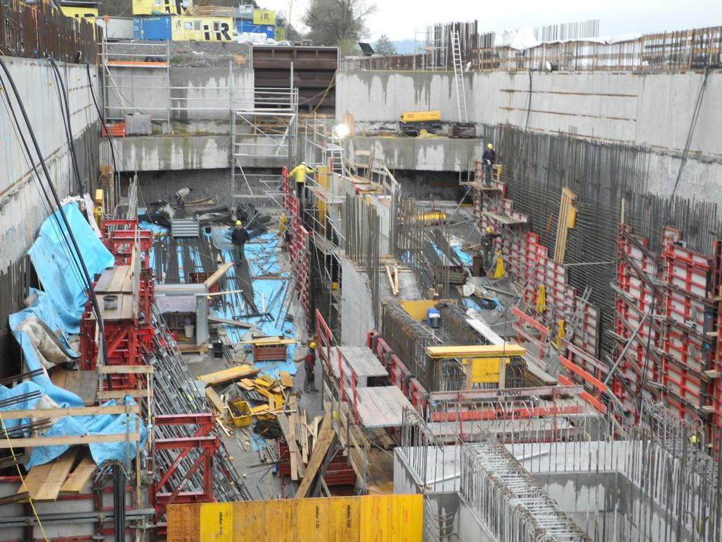 Fast chaotisch wirkt dieses Bild vom Inneren des künftigen Krafthauses, doch für die Baufacharbeiter bedeutet es höchste Konzentration und Genaugkeit der Ausführung