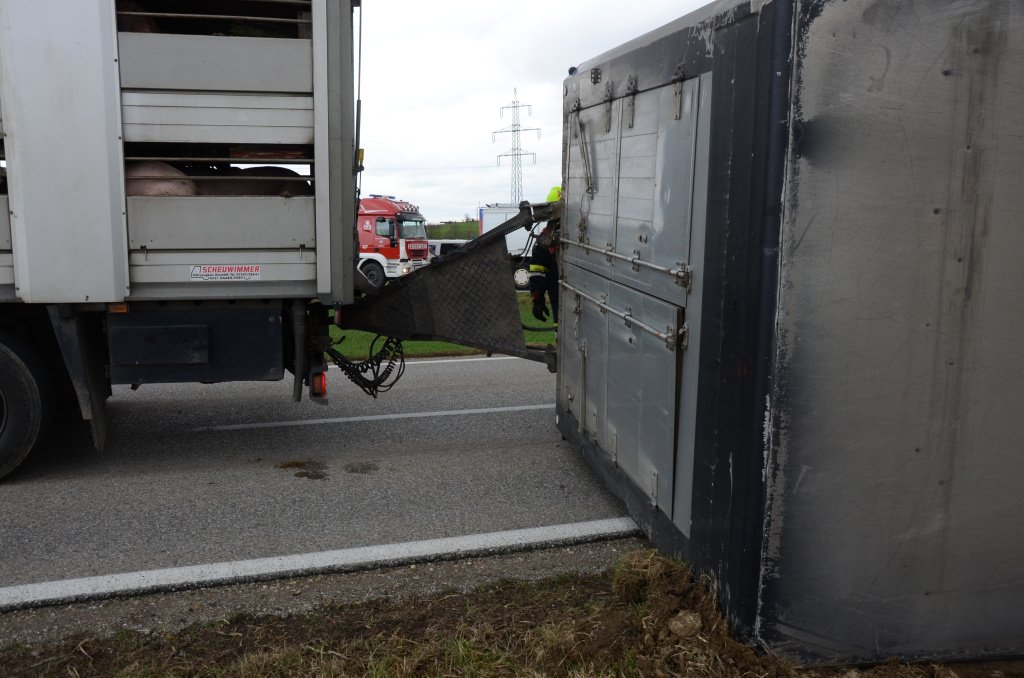 Schweinetransporter in Roggendorf umgestürzt - Teil2