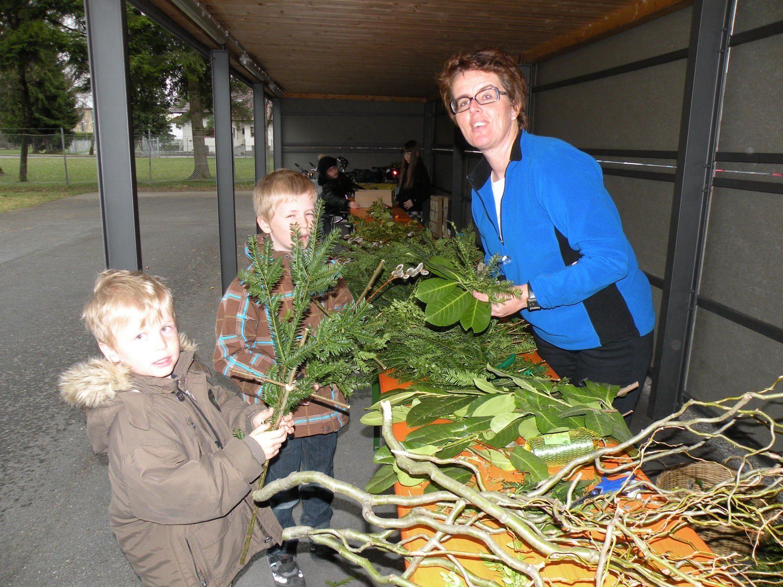 Michaela Bitriolsucht für die Buben die richtigen Zweige heraus.