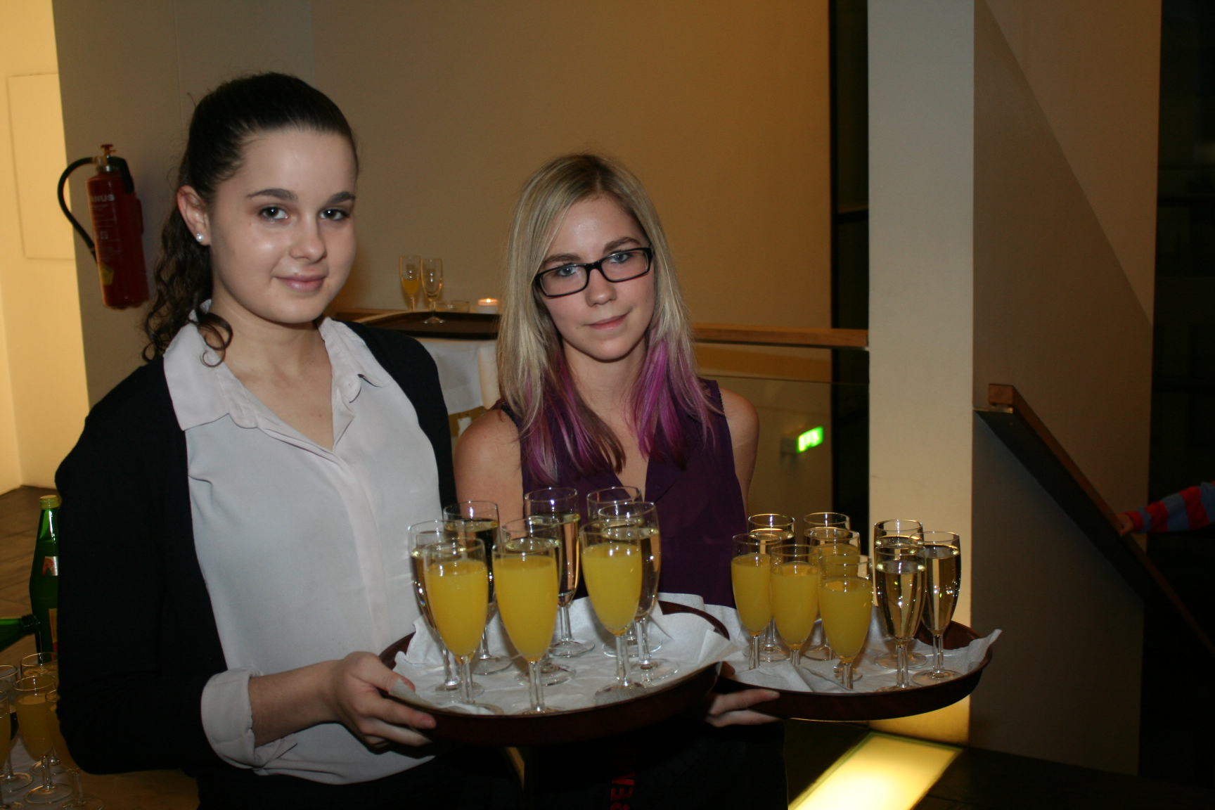 Ramona und Theresa empfingen die Premiereng__ste mit Sekt.JPG