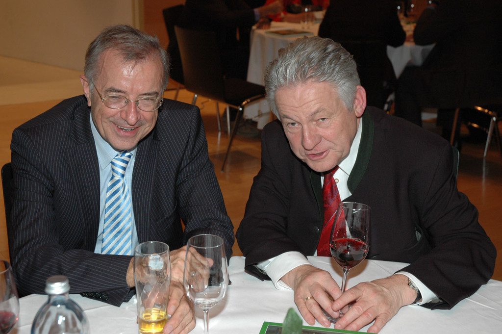 LH Herbert Sausgruber mit seinem Amtskollegen Josef Pühringer bei der 25-Jahr-Feier der Ländle-Oberösterreicher.