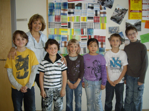 Direktorin Monika Müller-Leiner und einige der Kinder vor dem siebten und letzten Zelt