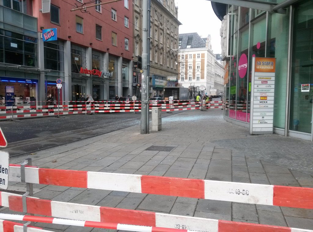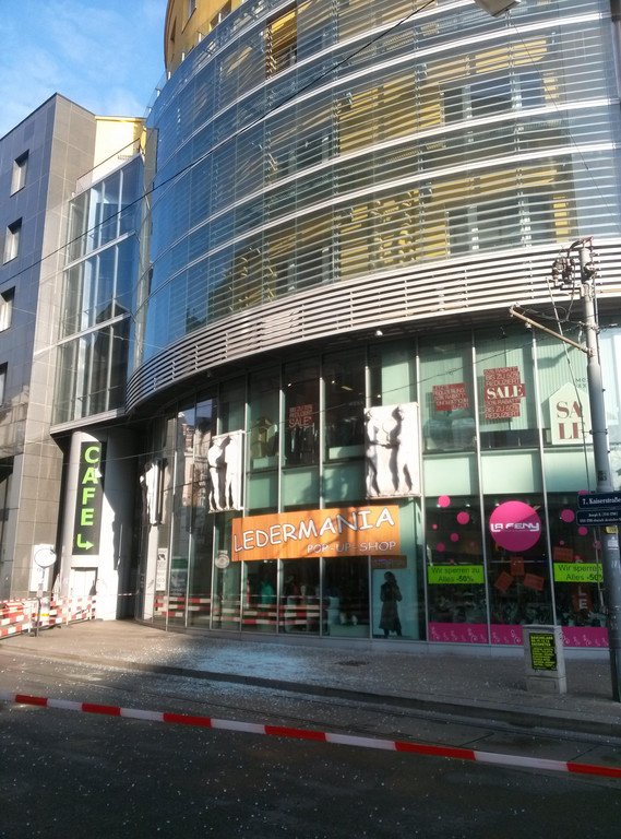 Glasscheibe stürzte von Kaufhaus LaStafa auf die Kaiserstraße hinunter