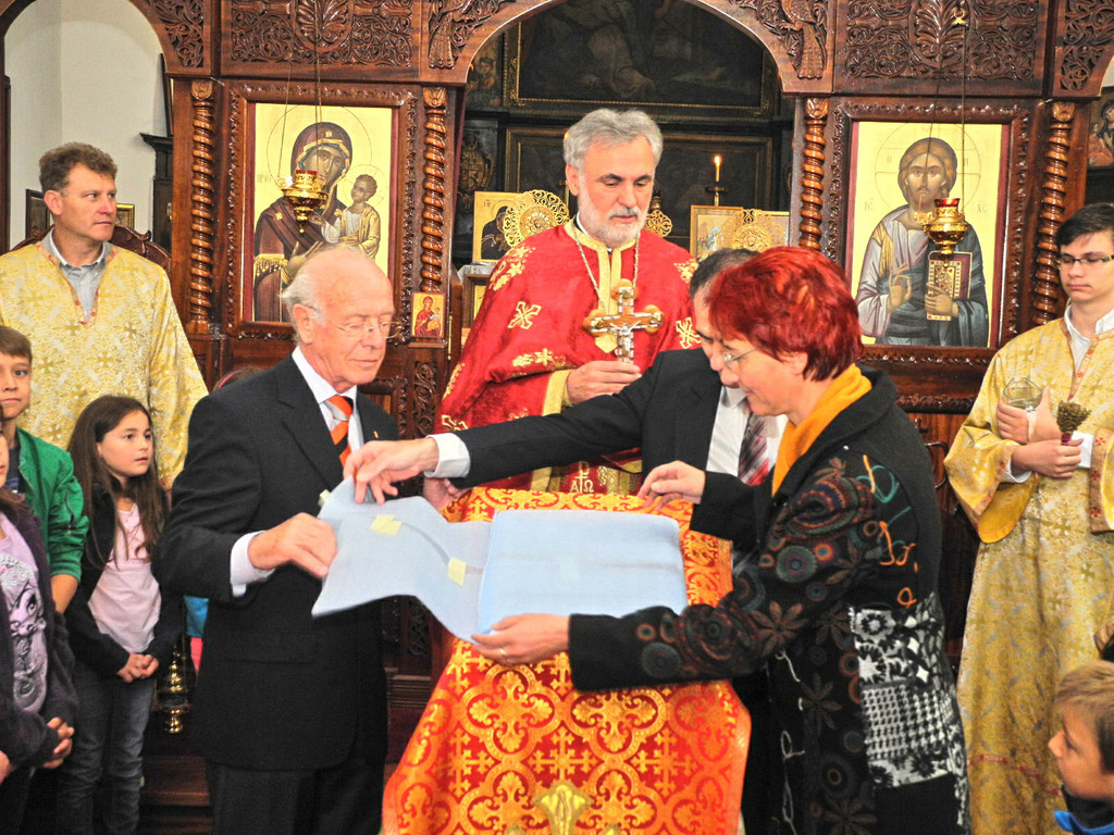 Daniela Bohle-Fritz vom Krankenhaus Seelsorgeteam beim Öffnen der Ikonenverpackung
