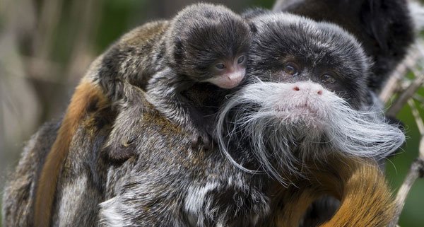 Erst 35 Gramm schwer und schon ein kleiner Bartansatz: Der Wiener Tiergarten Schönbrunn freut sich im Mai über den ersten Nachwuchs bei den Kaiserschnurrbarttamarinen. (Walter Wodal)