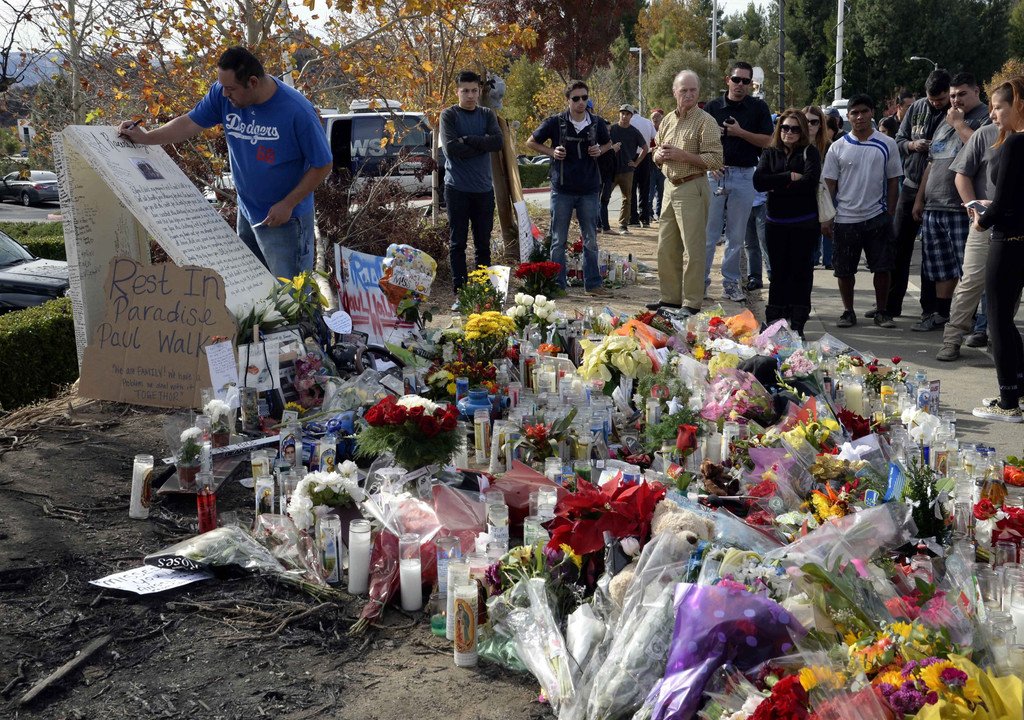 Gedenkfeier für toten Hollywood-Star Paul Walker an der Unfallstelle in Valencia, California