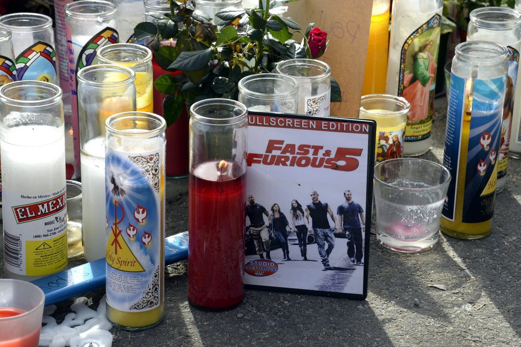 Gedenkfeier für toten Hollywood-Star Paul Walker an der Unfallstelle in Valencia, California