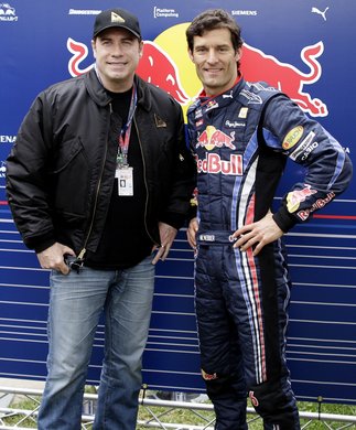 John Travolta posierte mit Mark Webber für die Fotografen