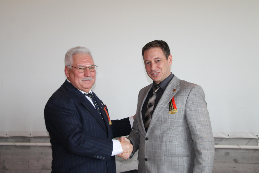 Zunftmeister Josef Mähr übergibt an Josef Hartmann.