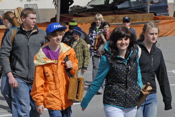 Die Rätschner am Karfreitag 2010 in der Tschaggunser Kreuzgasse. (Foto: Gerhard Scopoli)