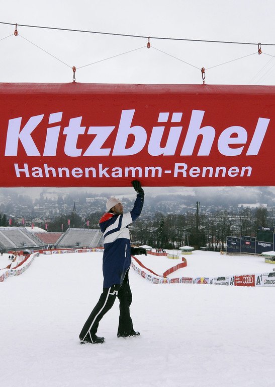 Neuschnee auf der Streif am Dienstag in Kitzbühel