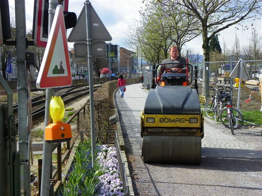 Erste Teerarbeiten am Hafen
