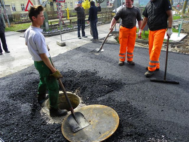 Erste Teerarbeiten am Hafen