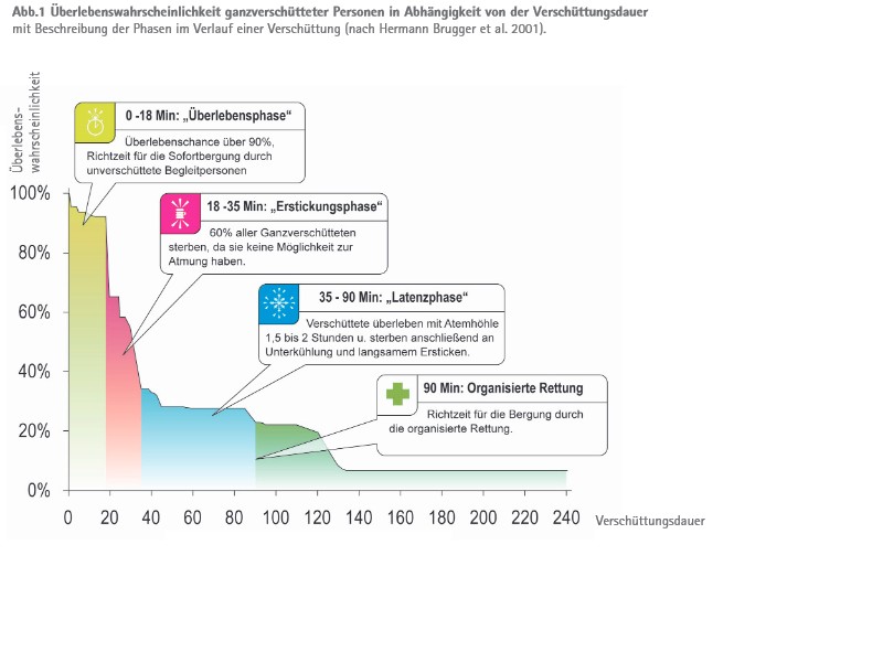 Skizze Überlebenswahrscheinlichkeit ganz verschütteter Personen. (c) bergundsteigen 04/11