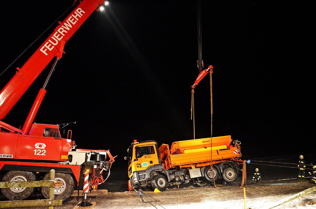Streufahrzeug in Niederösterreich von glatter Straße abgekommen