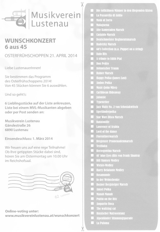 Flyer für den Osterfrühschoppen des MV Lustenau