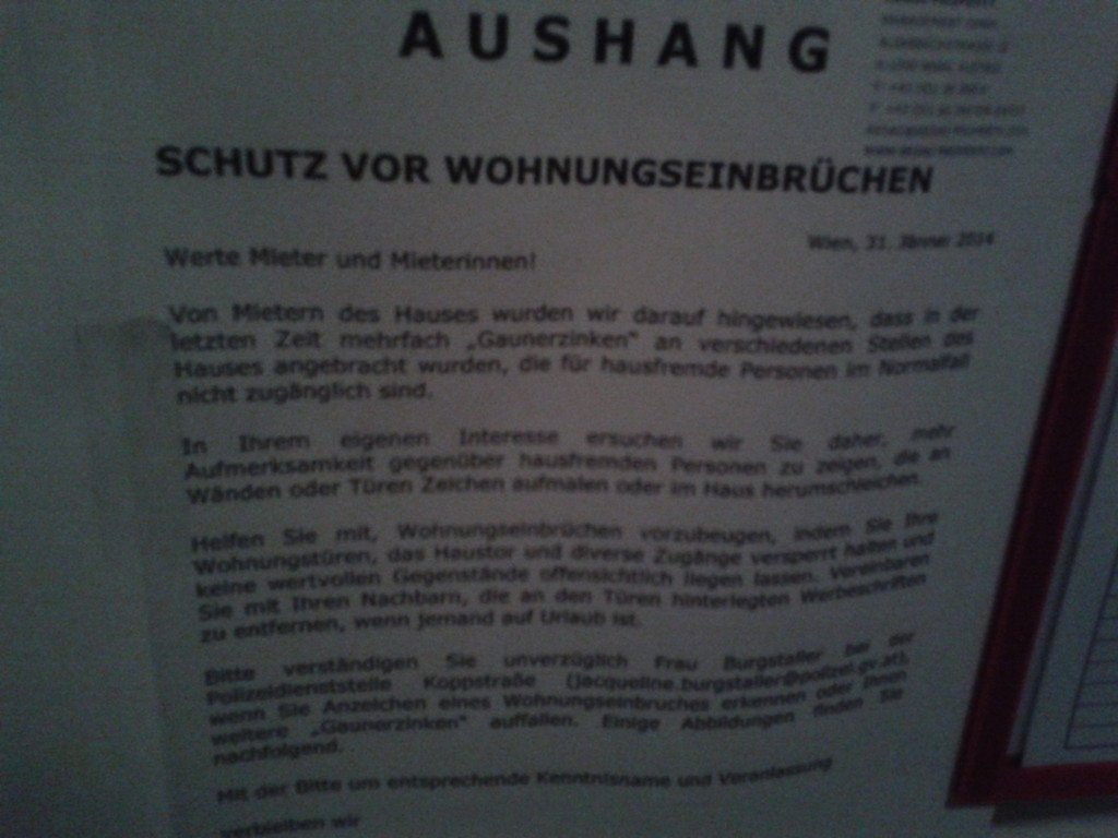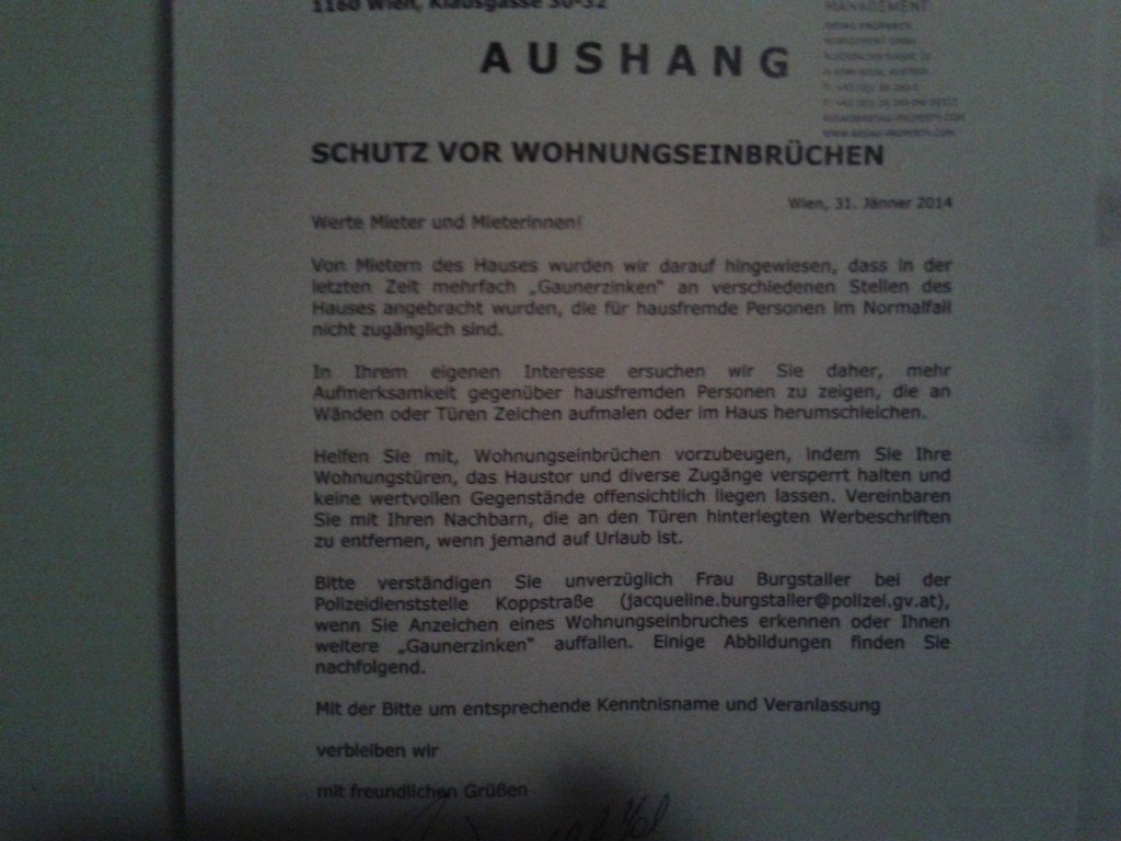 Leserreporter: Warnung vor Gauner-Zinken in Wiener Wohnhaus