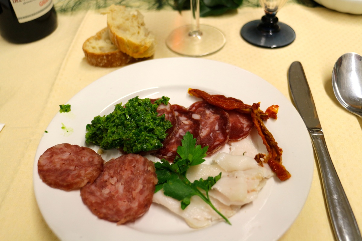 Antipasti: Salame, Salame cotto, Lardo, Carne cruda battuta al coltello