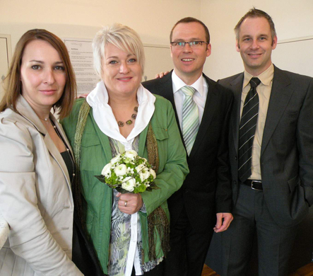 Das Brautpaar mit den Trauzeugen.