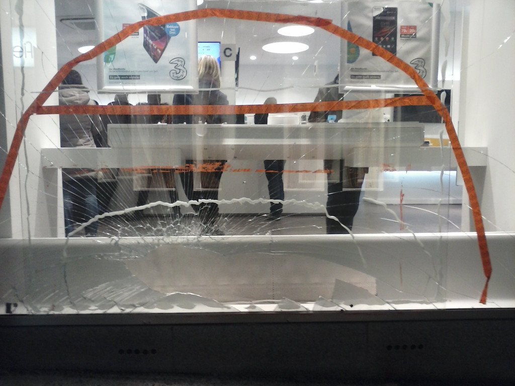 Kaputte Auslage von Drei-Shop auf der Mariahilfer Straße