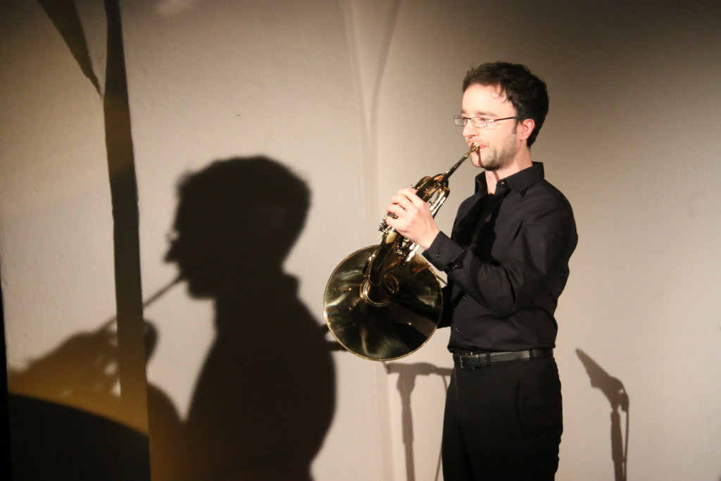 Der junge Hornist Karsten Zimmermann untermalte Krämers Klavierkünste.