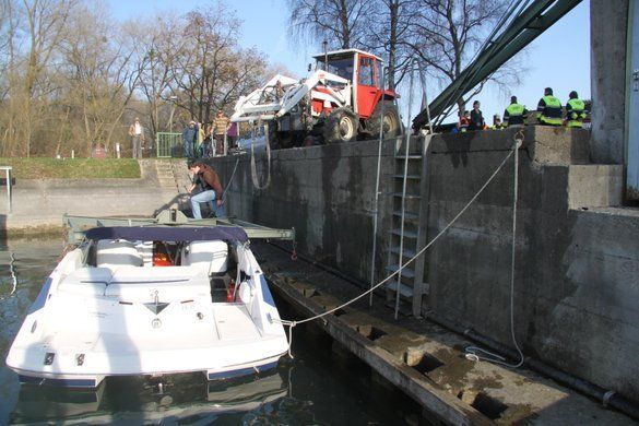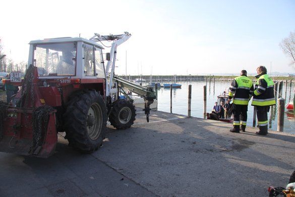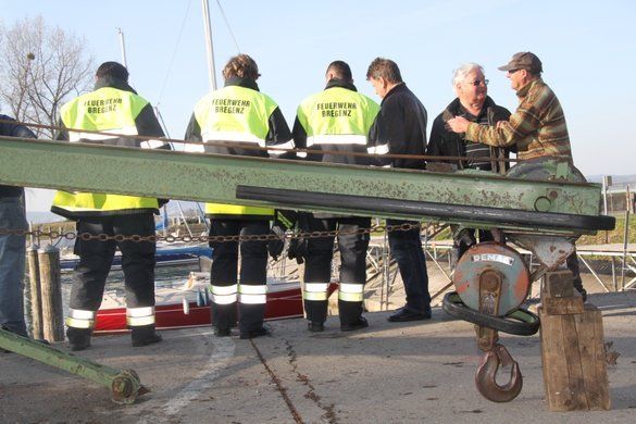 Bregenz Yachthafen: Kran stürzt auf Boot