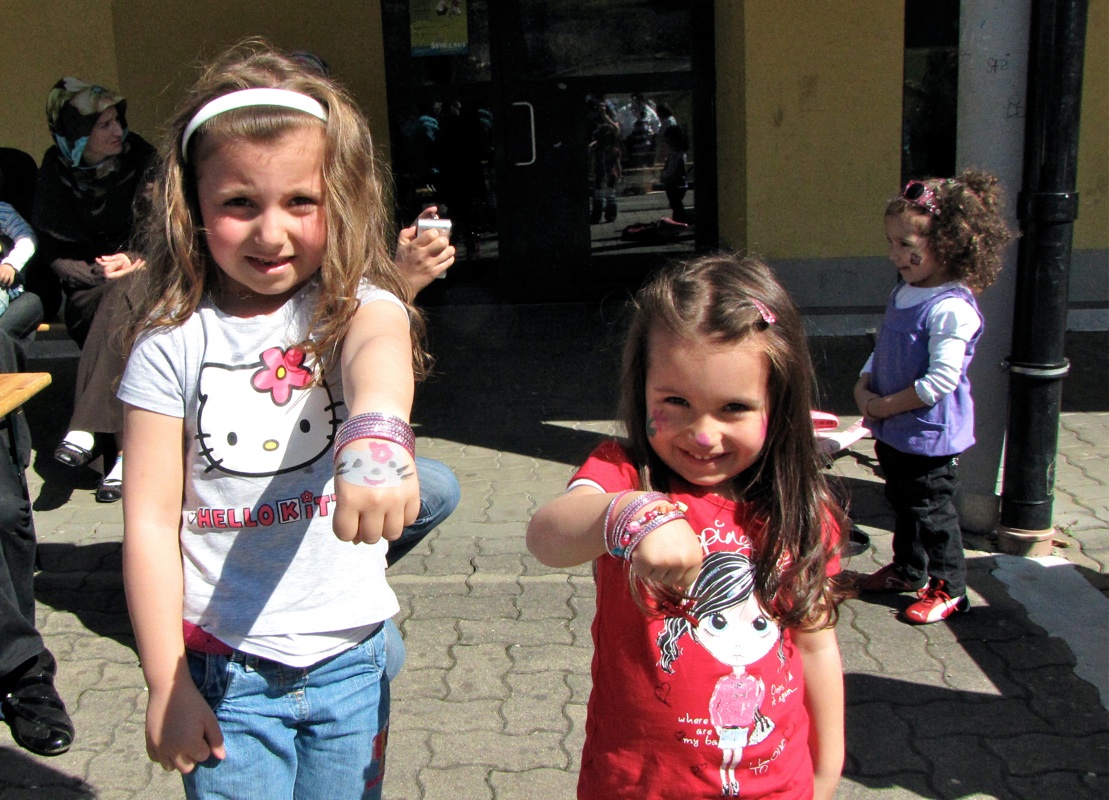 Gizem und Serra zeigen stolz ihre Bemalung