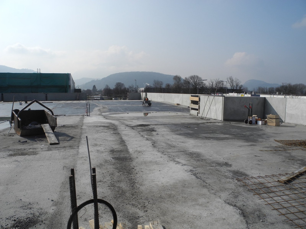 Die Seitenwände für das Parkdeck sind im Bau