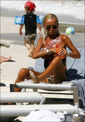 Donatella Versace am Strand