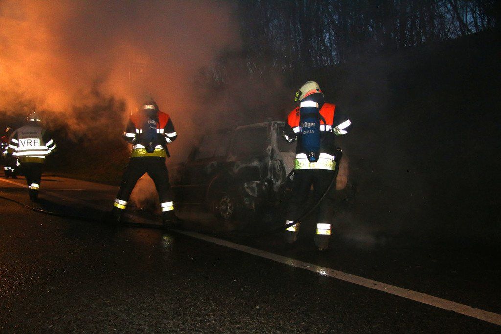 Auto steht auf der A14 in Flammen