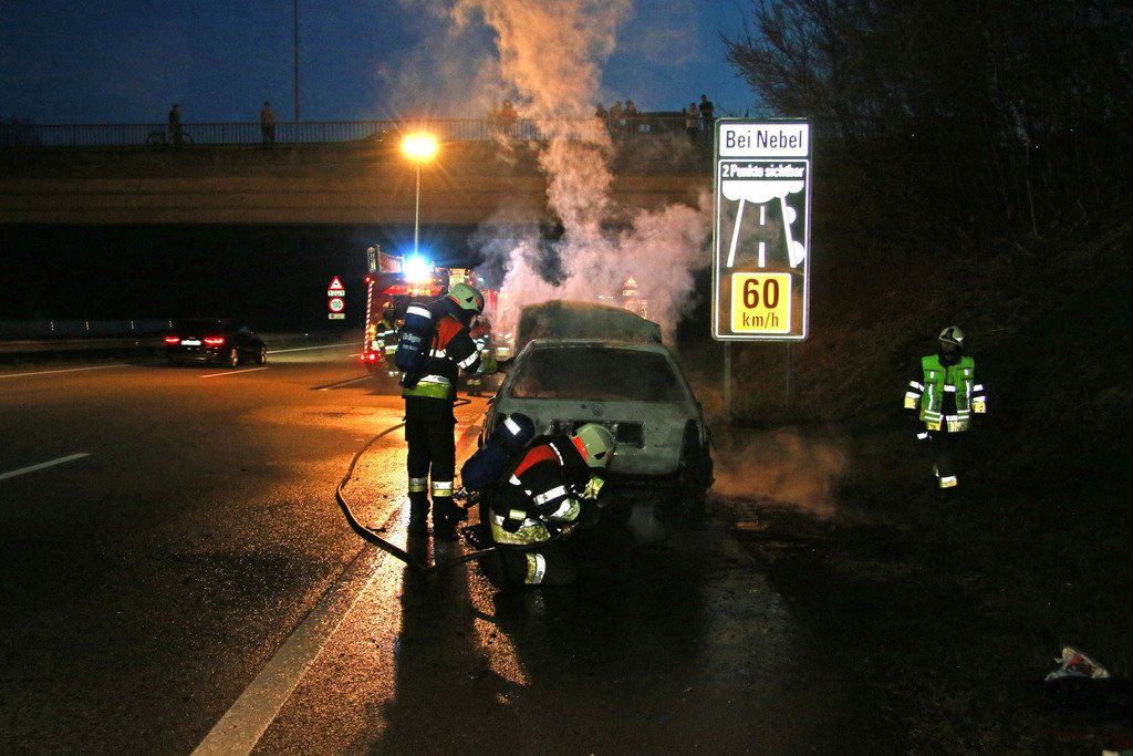 Auto steht auf der A14 in Flammen