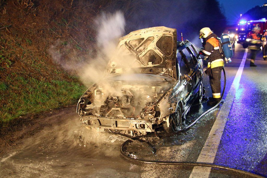 Auto steht auf der A14 in Flammen