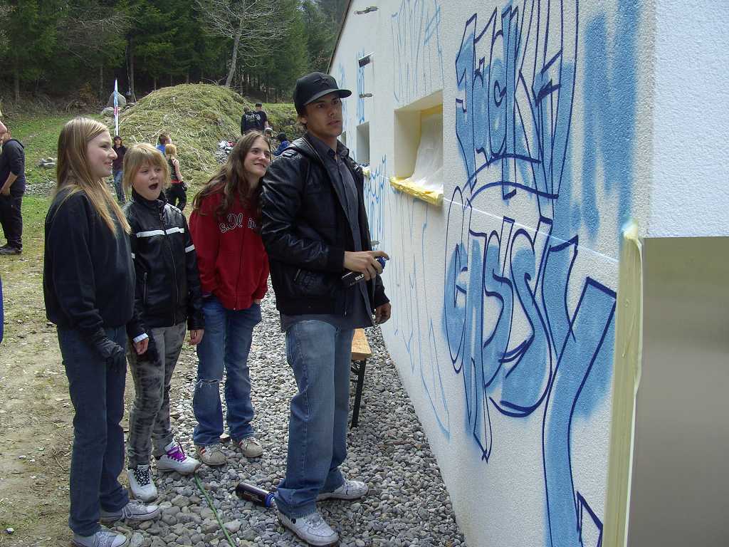 Gemeindegebäude als Graffiti-Kunstobjekt für Jugendliche