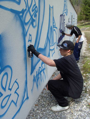 Gemeindegebäude als Graffiti-Kunstobjekt für Jugendliche